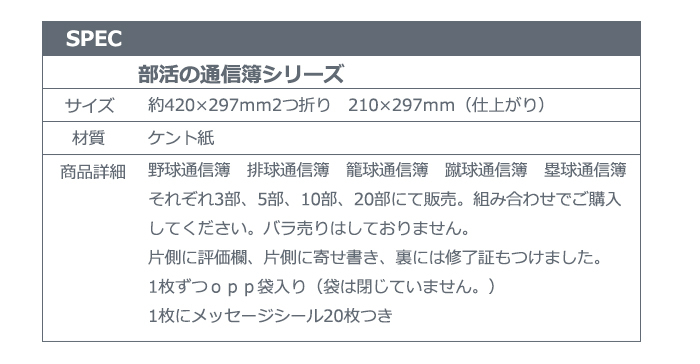 部活の通信簿 3部入り記念品寄せ書き 野球 排球 籠球 蹴球 塁球