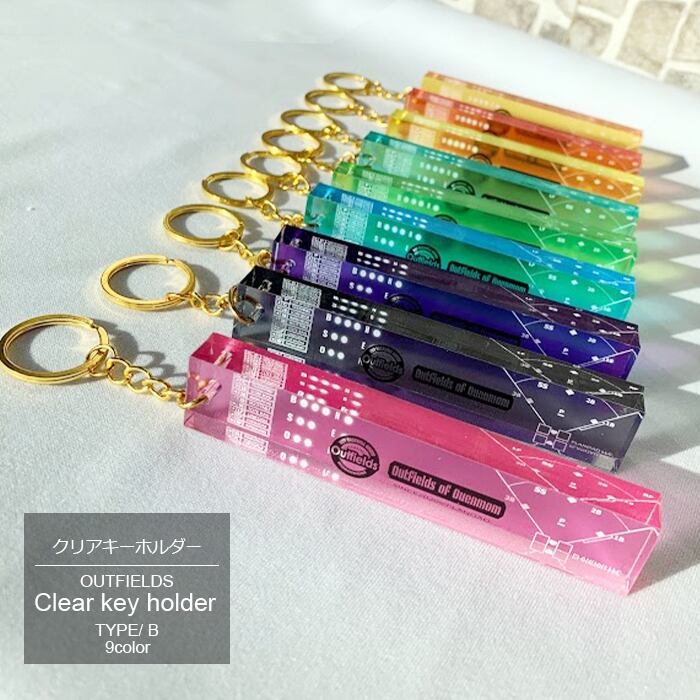 キーホルダー 野球 ソフトボール アクリル ホテルキー おすすめ クリアキーホルダー アクリル 9カラー 透明 Bタイプ シルバーパーツ ゴールドパーツ Outfields クリックポスト