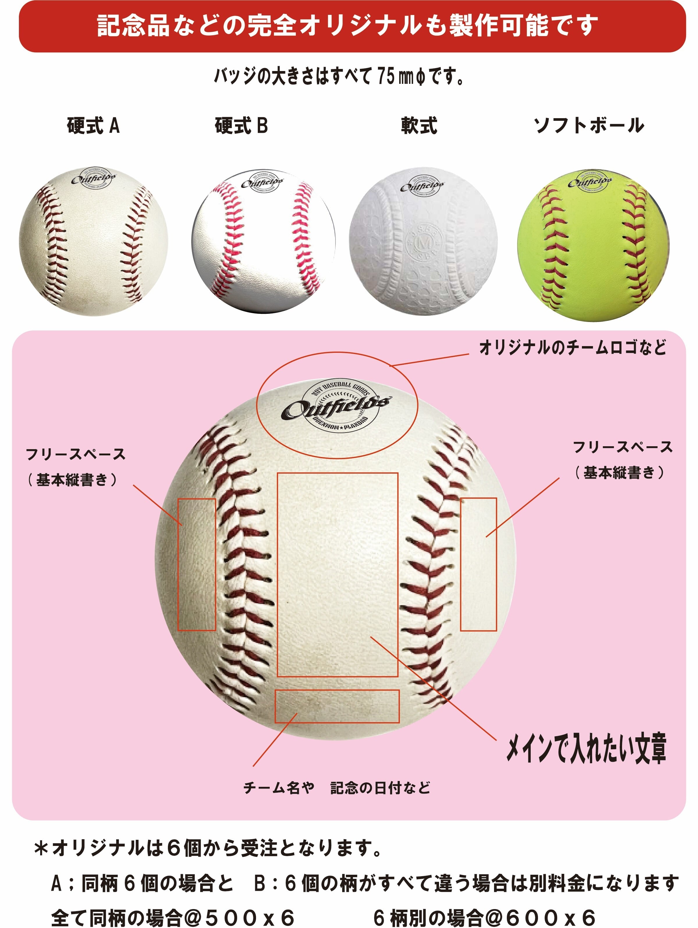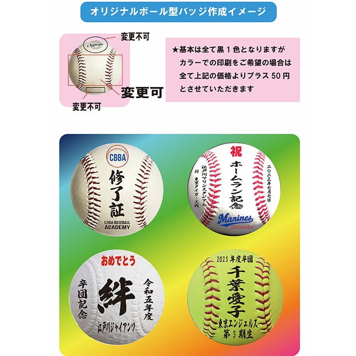 野球バッジ 缶バッジ 文字 オリジナル 月カン 自我自賛シリーズ野球 ソフトボール 軟式 硬式 ボール型 75mm 卒団 卒部 記念品